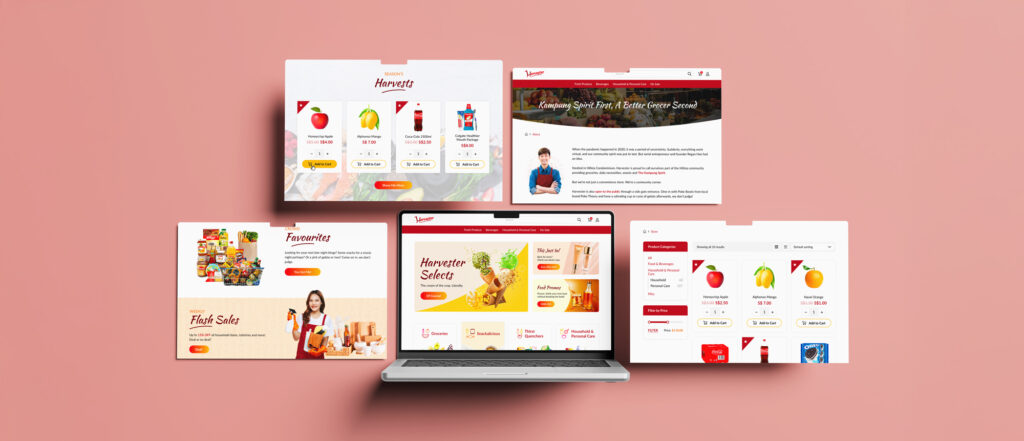 Located at Hillsta Condominium, Harvester is a grocery store that embraces the kampung spirit, serving as a community hub for daily essentials. The website and branding use local slang, warm colours, and friendly phrases to create a familiar, welcoming vibe. Our team crafted memorable slogans and design elements to strengthen the store’s brand identity.